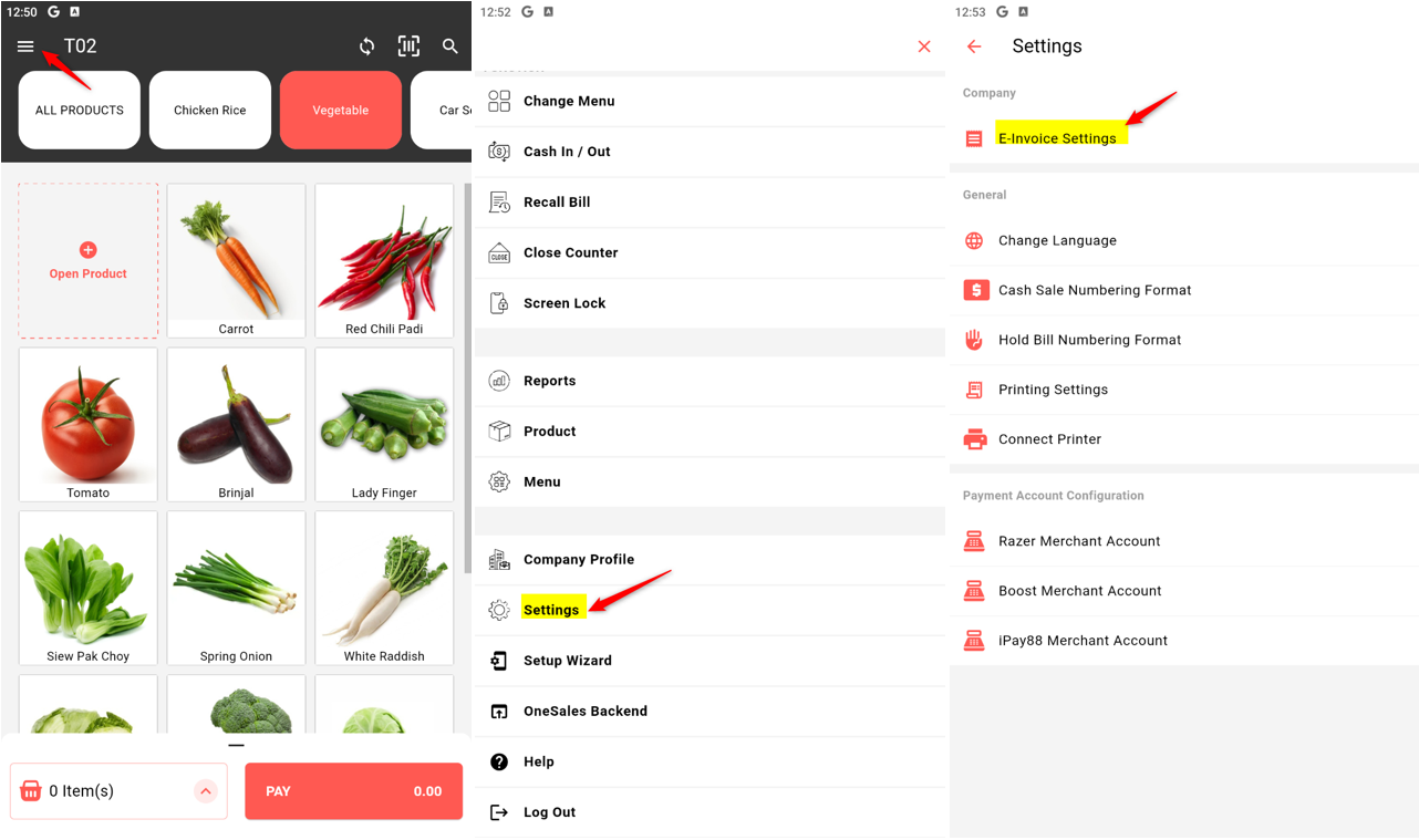 To access e-Invoice Setting, click on the “Menu” > “Settings” > “E-Invoice Settings”.