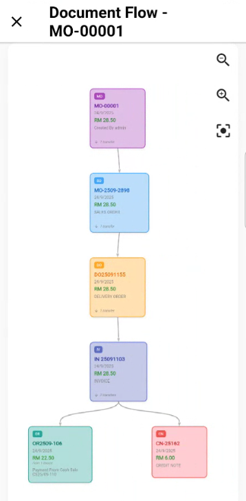 Auto-Generated Document No.: Each order is automatically numbered for traceability (e.g., MO-00004).