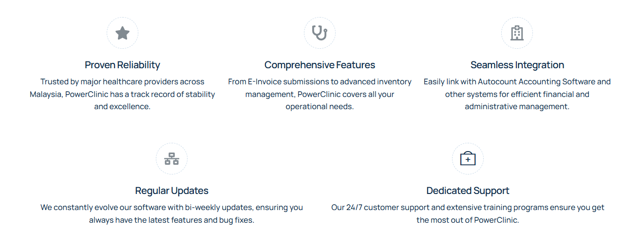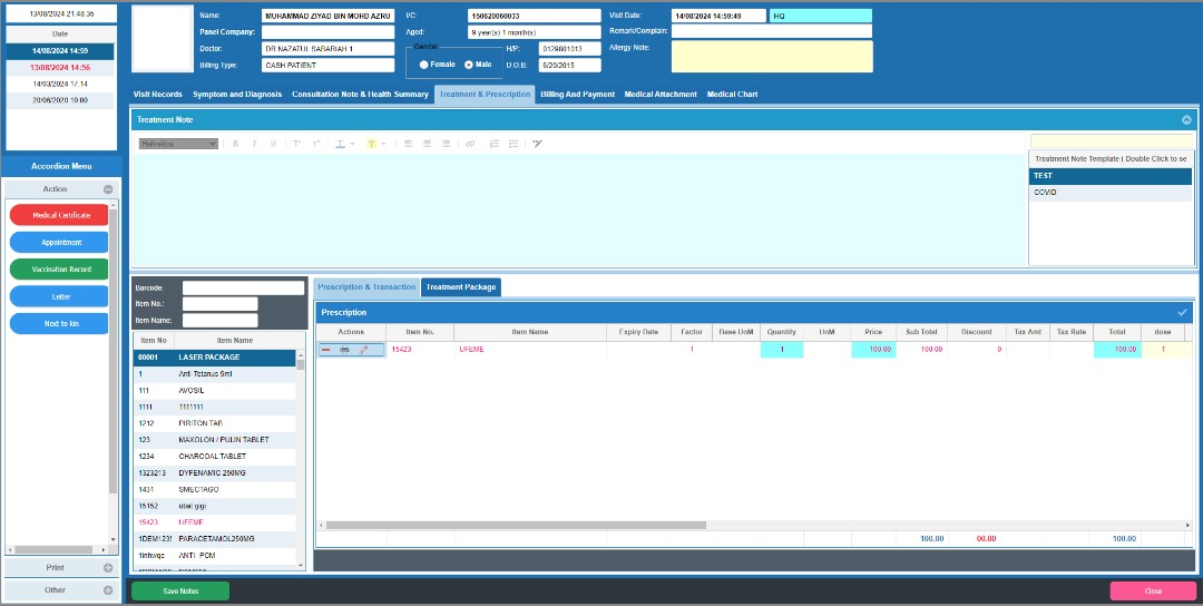 Malaysia’s E-Invoicing system, and offers customizable features, ensuring efficient financial management, streamlined billing, and tailored solutions to meet your clinic's unique needs.