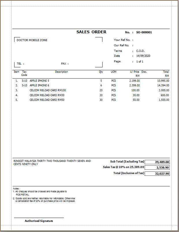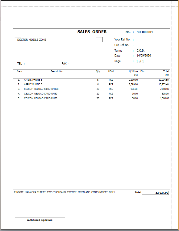 Sales Order: