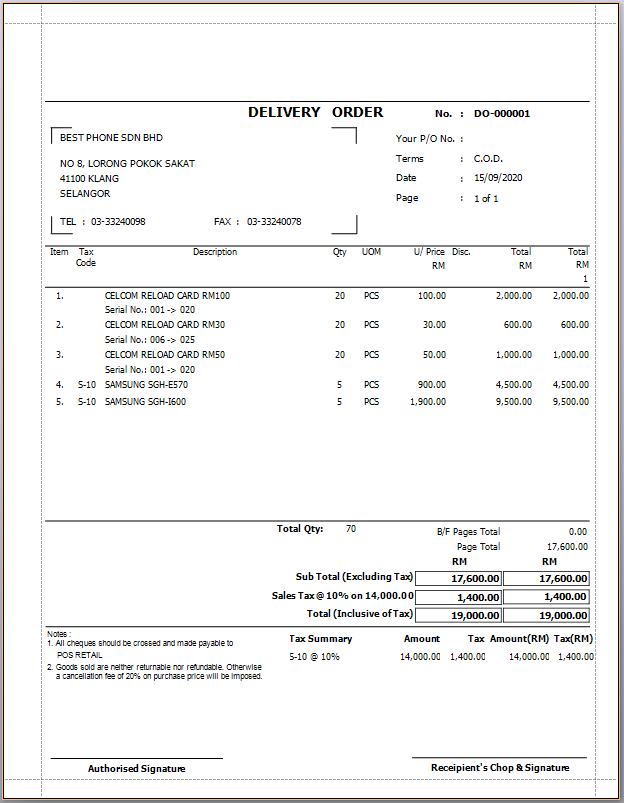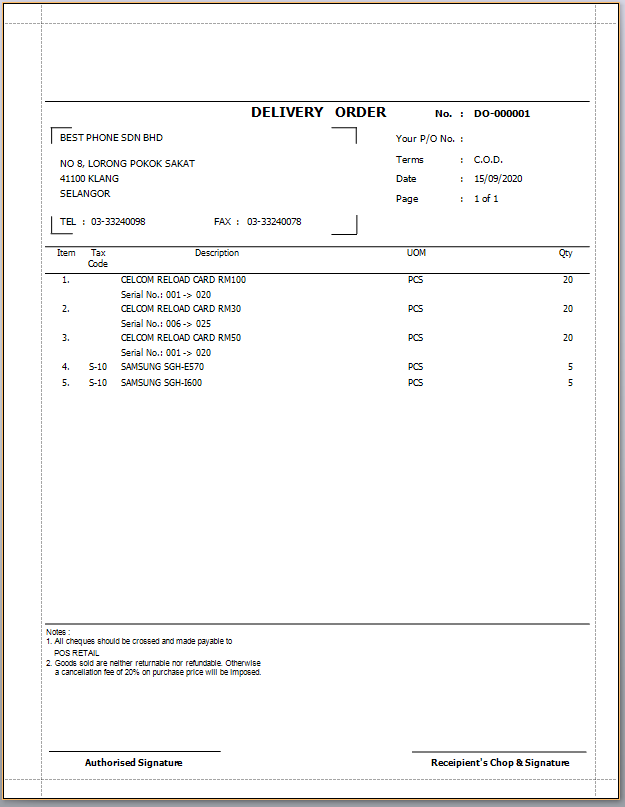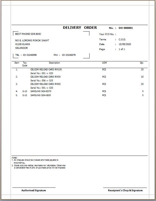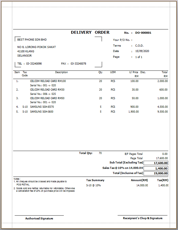 Tax Delivery Order with Price