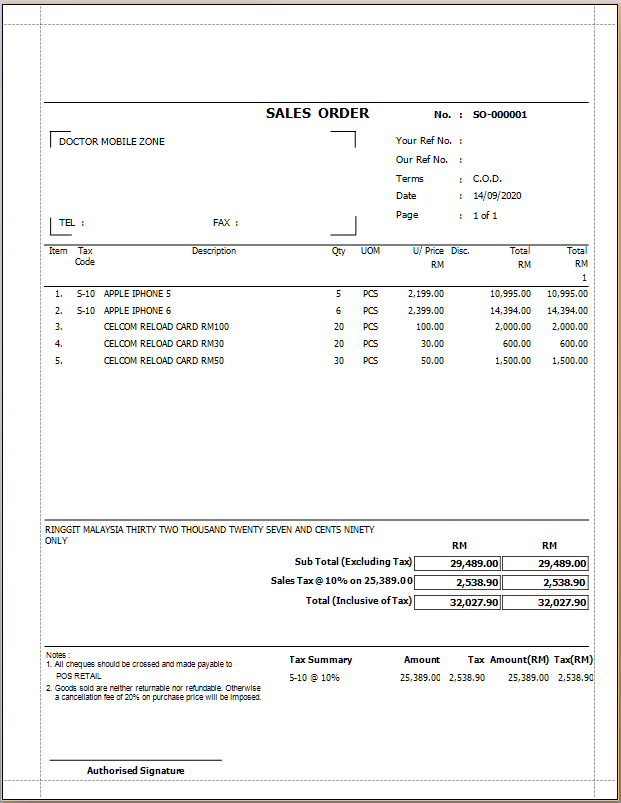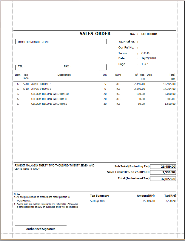 Tax Sales Order