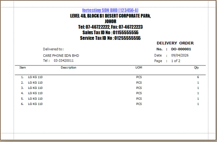 SST Sales Order